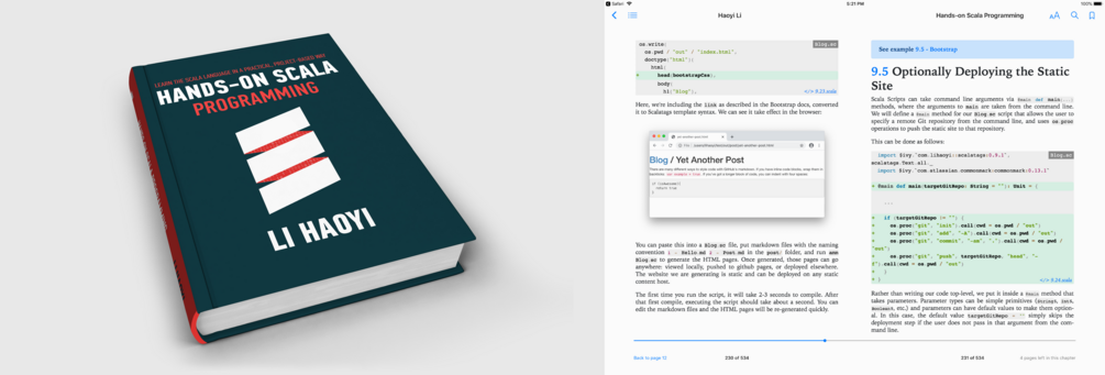 Hands-on Scala Programming is currently available in PDF, EPub, and Mobi e-book formats, money back guaranteed. This is for a personal copy, bulk discounts are available if you are buying multiple copies for an entire team or organization!